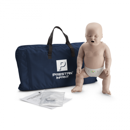 Set of 4 Prestan Infant CPR Manikins packaged in a convenient carrying bag used for practicing CPR on Infants. Prestan CPR Manikins contain a unique feedback system, informing students about correct compression rate and depth while training CPR.
